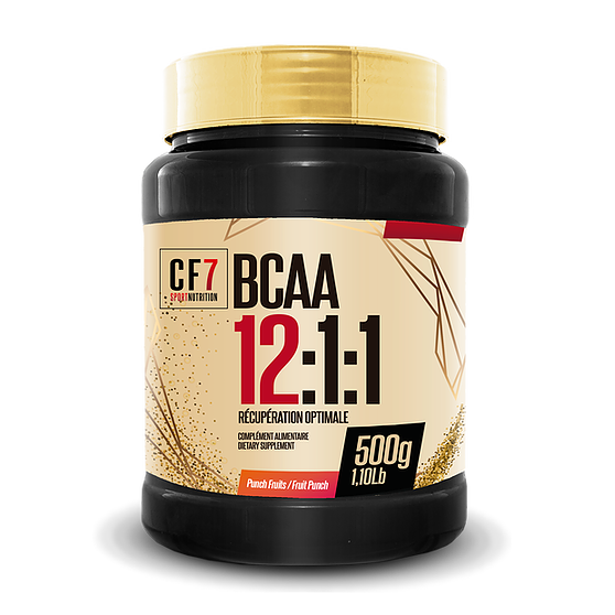 Les BCAA (acides aminés à chaîne ramifiée) sont essentiels à notre organisme, qui ne peut les synthétiser lui-même. Ils sont indispensables à notre santé musculaire, prévenant le catabolisme et favorisant l’anabolisme. Les BCAA CF7, avec un ratio idéal de 12.1.1, sont parmi les plus dosés du marché et sont labellisés Kyowa Quality pour une qualité inégalée.